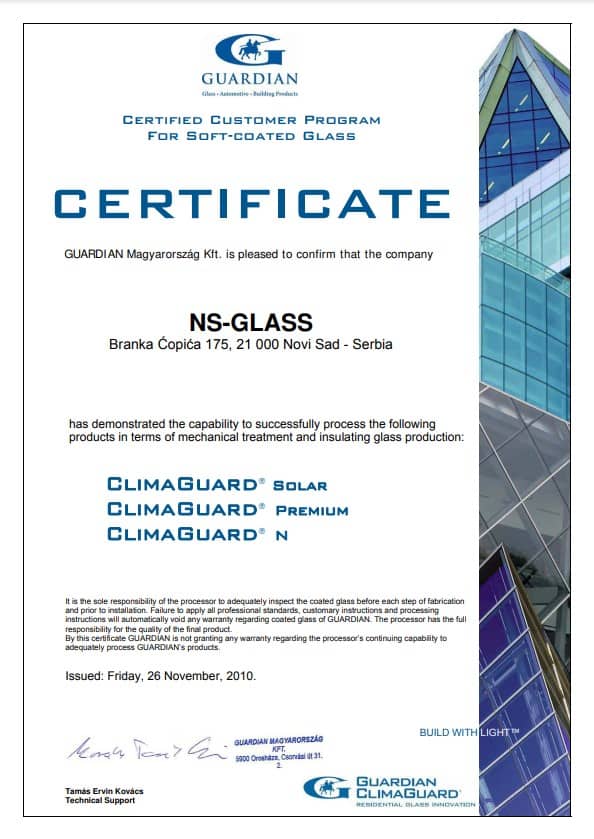 Tehnološki smo veoma opremljeni, tako da imamo mogućnost da vršimo automatsko sečenje stakla sa minimalnim odstupanjima (što je bitno za kvalitet izopana), ali i spajanje izopana u liniji koja pere staklo (“bezkontaktno”), kao i spajanje stakla uz minimalno prisustvo ljudi u procesu (čime je značajno smanjena mogućnost pojave grešaka na gotovom proizvodu).